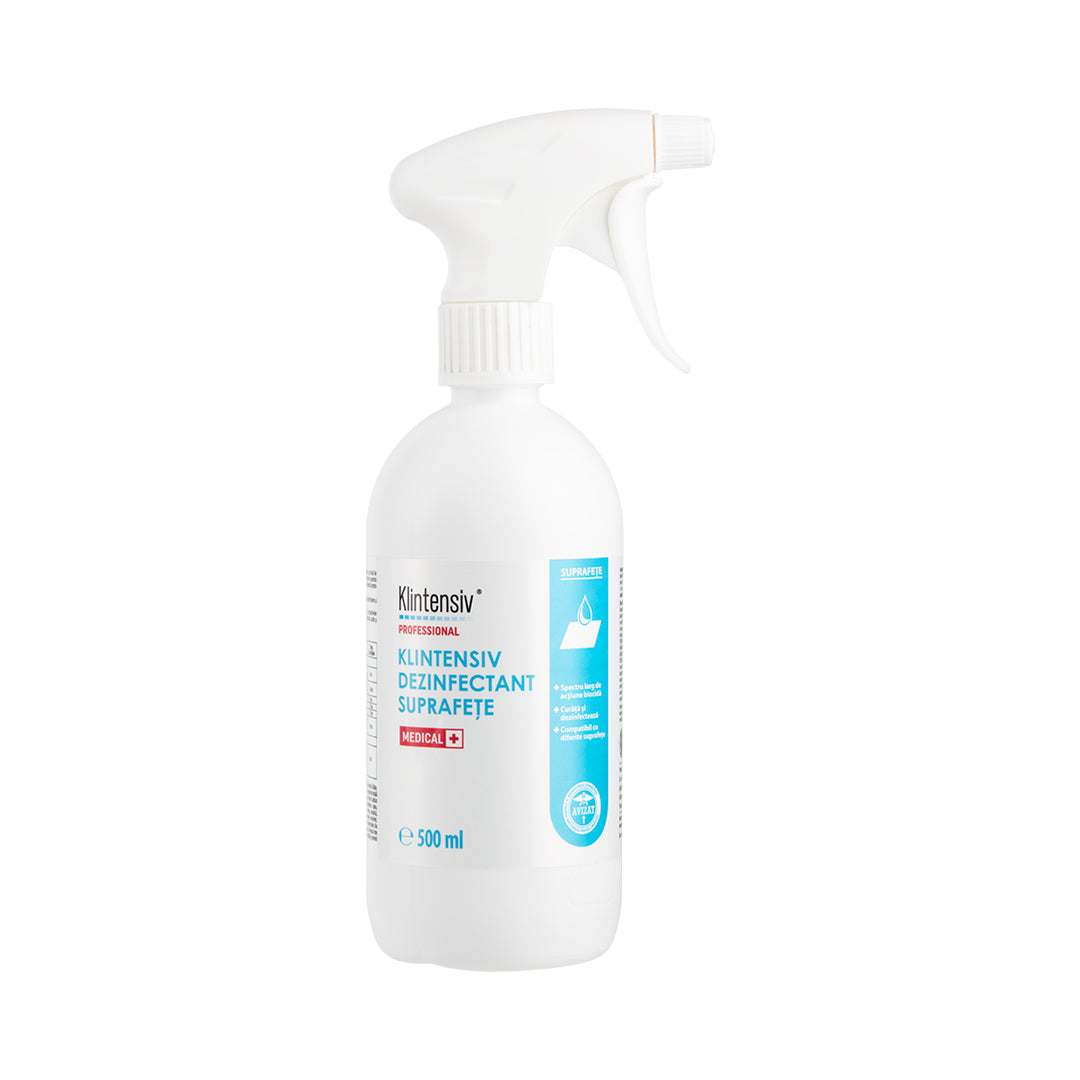 Masurile ce trebuie luate in acest sens sunt necesare mai mult ca oricand, mai ales in situatia unei pandemii. O dezinfectare temeinica incepe cu un produs eficient. KLINTENSIV - Dezinfectant suprafete gata de utilizare igienizeaza scaunele de tratament, suprafetele si instrumentele din cabinetele medicale, dar si echipamentele, microaeroflora si, eventual, instrumentarul din saloanele cosmetice, zonele industriale, farmaceutice si cele din domeniul alimentar.