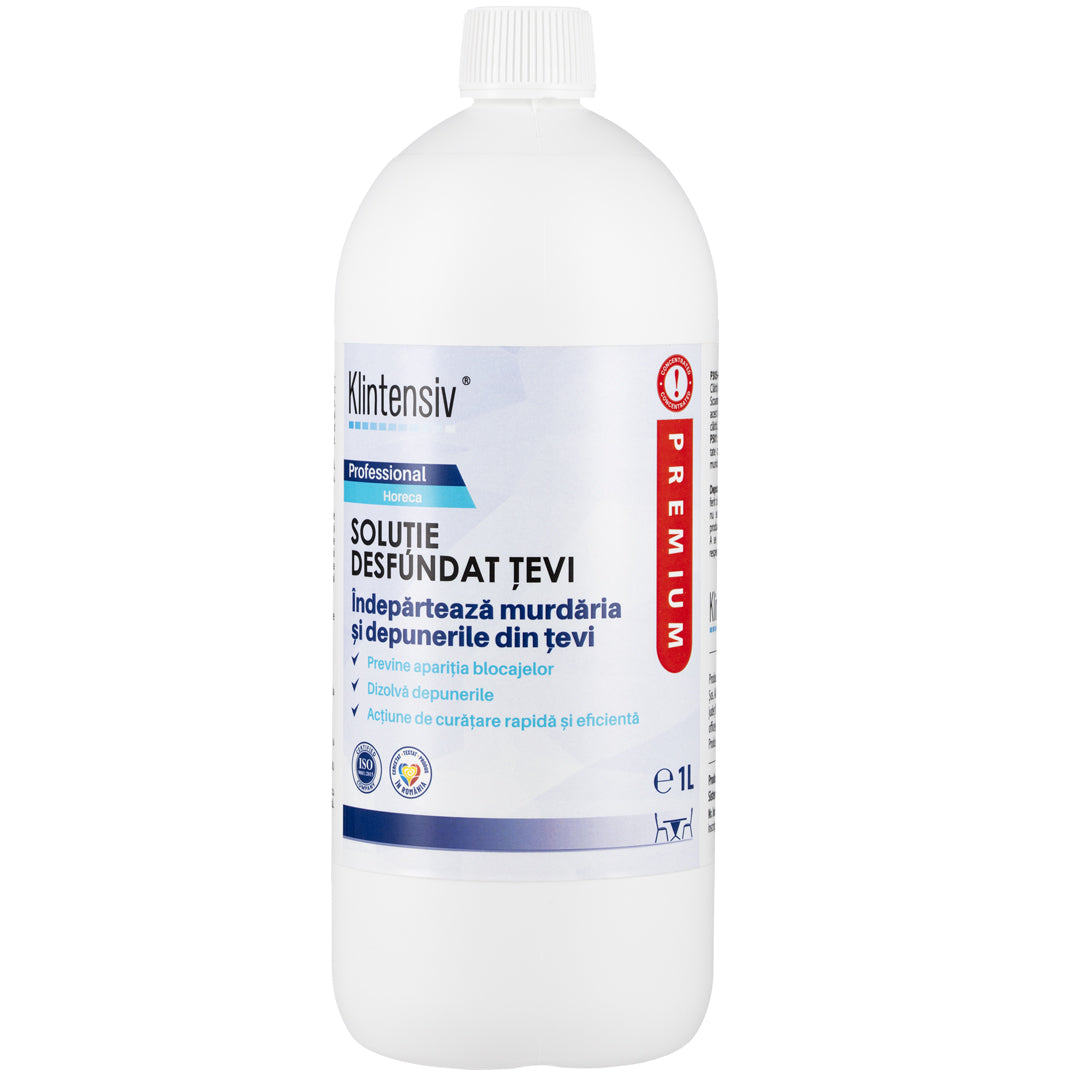 Solutie profesionala pentru desfundarea tevilor, care indeparteaza murdaria si depunerile grosiere. Desfunda eficient scurgerile si conductele infundate, dizolva complet reziduurile, se raspandeste uniform in conducte si scurgere. Curata si impiedica formarea mirosurilor neplacute. Se utilizeaza atat pentru tevi din material plastic cat si metalic, fara sa le afecteze.Compozitie: In acord cu recomandarile 648/2004 EEC: apa, acizi anorganici <30%, surfactant neionic <3%, fosfonat <1%, inhibitor de coroziune.Instructiuni de utilizare: Turnati intre 250-300 ml solutie pentru scurgeri partial infundate, lasati sa actioneze 30 min si apoi clatiti cu apa din abundenta. Pentru scurgeri infundate se toarna 400 - 500 ml solutie, lasati sa actioneze 30-45 min apoi clatiti cu apa din abundenta. Pentru intretinere si eliminarea mirosurilor neplacute se toarna 100 ml in scurgere saptamanal si se lasa sa actioneze 30 min, apoi se clateste cu apa.Instructiuni de securitate: Conform fisei cu date de securitatea produsului.